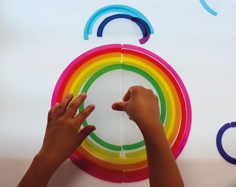 Realizar actividades con los colores de este arco iris son un estímulo visual y sensorial que pueden mejorar nuestro estado de ánimo Es una herramienta perfecta para realizar actividades con colores en la mesa o tablero de luz. Realizar actividades con los colores de este arco iris son un estímulo visual y sensorial que, incluso, pueden mejorar nuestro estado de ánimo. Además, al venir un pack de dos arco iris, se puede ejercitar habilidades motrices además de geometría, seriación y tamaño uniendo los semicírculos entre sí. Se puede hacer un sinfín de actividades con este material tanto dentro como fuera de la mesa o tablero de luz, además de enseñar la gama cromática según la teoría de color de Goethe.