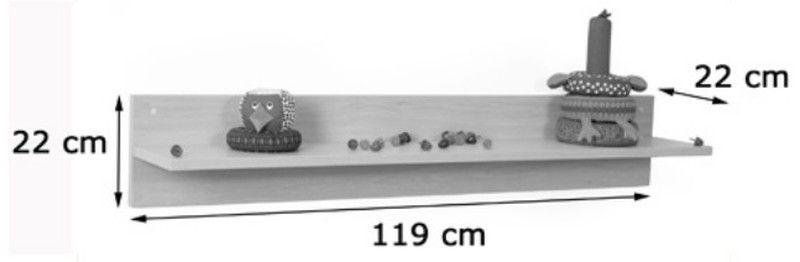 Balda con soporte trasero, fabricada en melamina de haya, con tableros de 19 mm de espesor y con cantos en PVC de 2 mm. Aristas redondeadas. Sistema robusto de fijación a la pared, mediante pasos de taladrado y atornillado. Garantizado por los ensayos realizados en centro tecnológico de certificación de mobiliario TECNALIA.