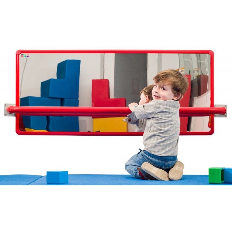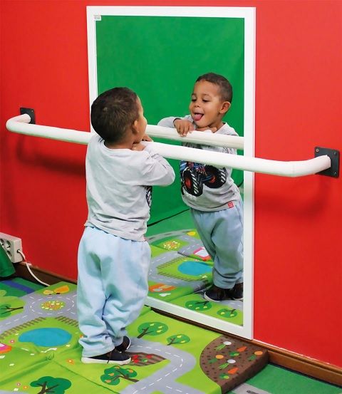 La barra estabilizadora de HenBea ofrece seguridad a los primeros pasos de un bebé, o a un niño con necesidades especiales, ayudándole a sujetarse y sentirse seguro mientras hace el ejercicio. La barra estabilizadora es un complemento ideal para todos los espejos grandes de plástico irrompible, tanto con el marco de aluminio como con el marco de madera, de la marca HenBea. Esta barra especial está hecha de metal y forrada con piel sintética rellena y mullida en su interior que lo hace lavable, seguro y resistente.