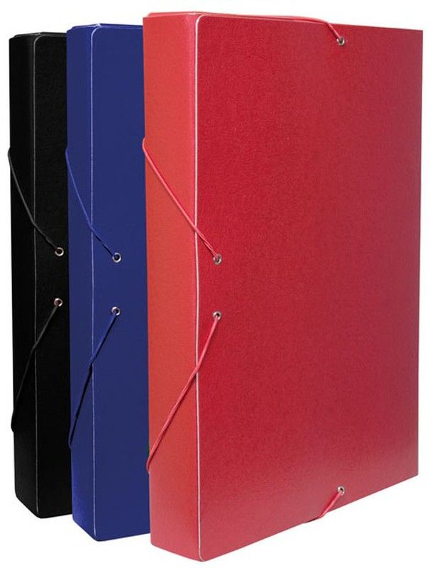 - Cartón troquelado gofrado. - Fijación de las solapas por remaches. - Cierre con elásticos coordinados en cada color. - En formato Folio.