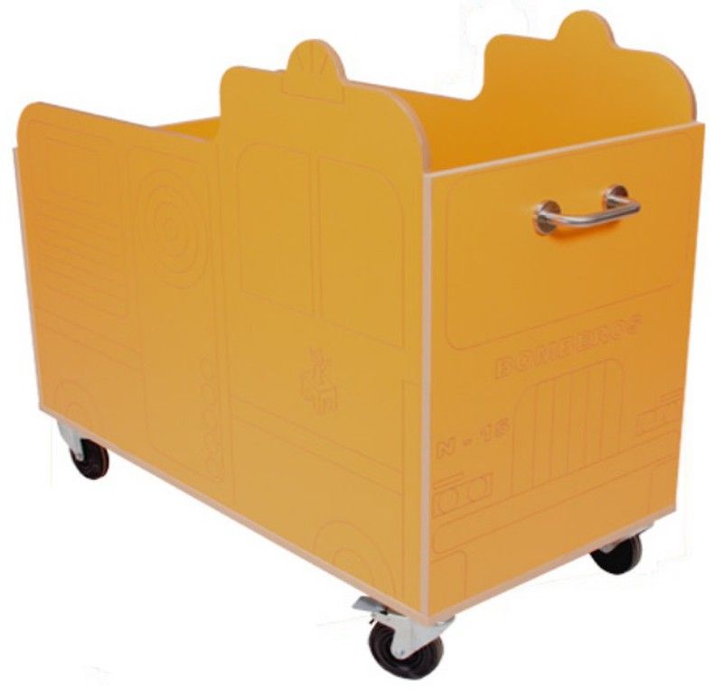 Fabricado en tablero DM melaminizado de 16 mm de grosor con cantos redondeados y barnizados con barníz no tóxico. Base en melamina de haya de 19 mm de espesor y cantos en PVC de 2 mm. Dispone de ruedas de gran resistencia, con freno y asa metálica en el frontal lo que permite desplazarlo facílmente. Decorado en sus cuatro lados con un divertido grabado de camión de bomberos. INDISPENSABLE PARA EVACUAR A LOS NIÑOS EN CASO DE EMERGENCIA. Garantizado por los ensayos realizados en centro tecnológico de certificación de mobiliario TECNALIA.