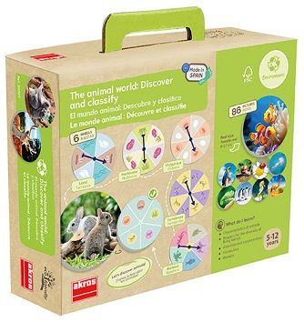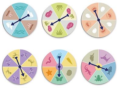 Juego para descubrir la diversidad del mundo animal y aprender a clasificar los animales en función de sus principales características: según su alimentación (herbívoro/ carnívoro/ omnívoro), su hábitat natural (aéreo/ terrestre/ acuático), su forma de reproducción (ovíparo/ vivíparo), su esqueleto interno (vertebrado/ invertebrado), etc. Lanza las ruletas y busca los animales que reúnen esas características entre las 84 imágenes reales. ¡Juega en grupo y descubre cuánto sabes del mundo animal!