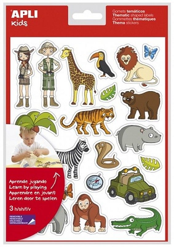 Bolsa de gomets temáticos La Selva. Este tipo de gomets, desarrollados con la colaboración de educadores, ayudan a los niños a identificar conceptos que les rodean en su día a día a la hora de vestirse, facilitándoles esta tarea diaria. Además, las divertidas ilustraciones les permitirán enriquecer su vocabulario mientras desarrollan sus habilidades motoras. Gomets de adhesivo removible para que puedan corregir si se equivocan.