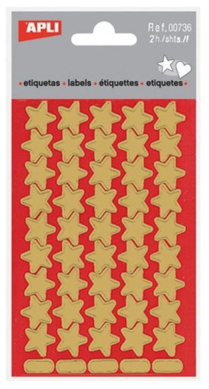 Bolsa de pegatinas con estrellas doradas de adhesivo permanente tamaño 14 mm. . Ideales para decorar tus objetos preferidos, tarjetas de felicitación, envolver regalos, etc.