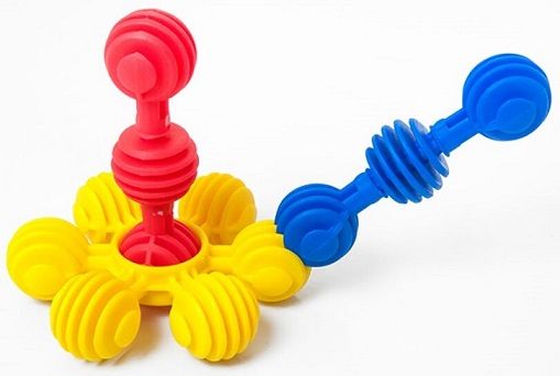 Original juego de construcción con un tipo de encaje multidireccional: un aro con 6 bolas.