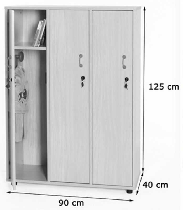 Mueble conjunto de 3 taquillas individuales con balda y una percha por taquilla, fabricado en melamina de haya, con tableros de 19 mm de espesor excepto trasera de 10 mm. Cantos de PVC de 2mm acabados por las dos caras. Pies niveladores de PVC de 4 cm de diámetro, con opción de dos alturas (4 y 8 cm), para evitar la humedad y desniveles que pueda tener el suelo. Perchas interiores de colores a elegir fabricadas en polipropileno con aristas redondeadas y sistema de doble colgador. PUERTAS INTERIORES ANTIATRAPAMIENTO DE DEDOS EN SU CIERRE, tiradores de polímero suave (goma anti golpes). Cada puerta dispone de cerradura individualizada con 2 llaves incluidas. Estas cerraduras pueden ser abiertas con una llave maestra. Garantizado por los ensayos realizados en centro tecnológico de certificación de mobiliario TECNALIA.