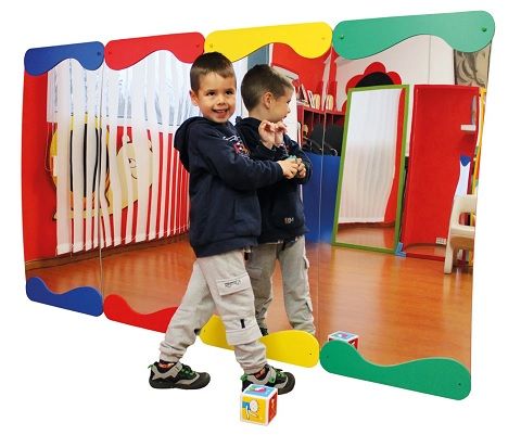 Espejo de seguridad montado sobre un panel rígido con orificios para montaje en la pared. Recomendamos encajarlos para formar un gran espejo de 2 metros.