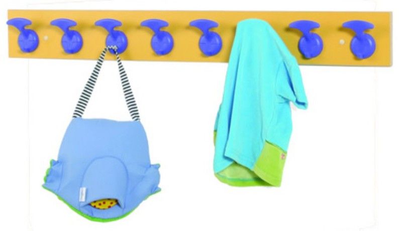Perchero fabricado en melamina de haya, con tableros de 19 mm de espesor y con cantos en PVC de 2 mm. Acabado por las dos caras. Dispone de 8 perchas fabricadas en polipropileno con aristas redondeadas y sistema doble colgador, para poder colgar la vestimenta del niño. Garantizado por los ensayos realizados en centro tecnológico de certificación de mobiliario TECNALIA.