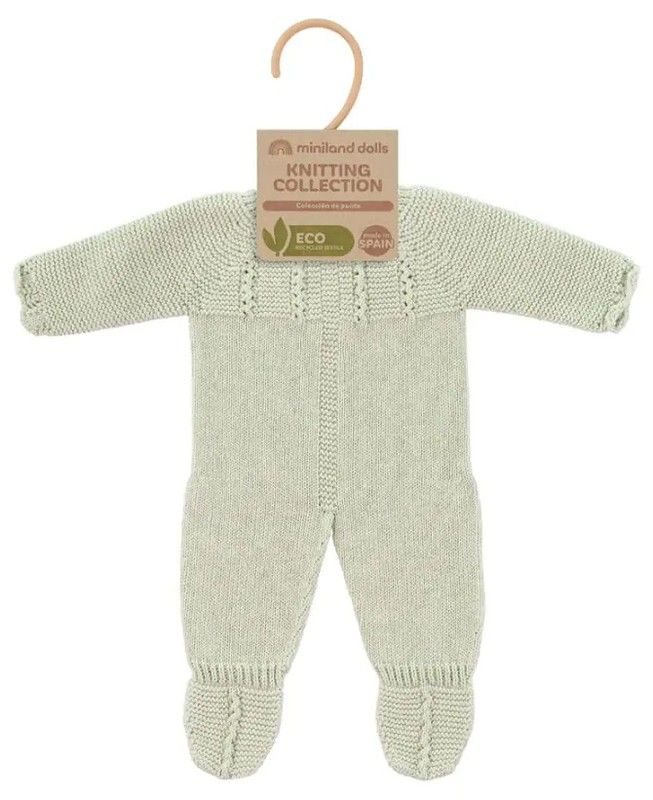 Pijama de punto para muñecos y muñecas de 21cm. Tiene un bonito color lino suave. La nueva colección de ropita de punto para muñecos Miniland Dolls, está fabricada con materiales reciclados. Todos ellos en tonalidades naturales y con un aire “handmade”.