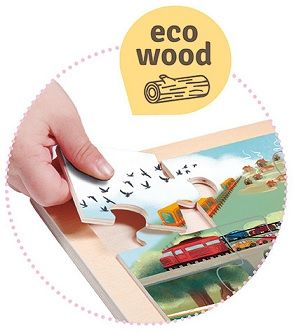 Pack de 4 puzzles de madera ECO de 35 piezas cada uno. Compuesto por: el aeropuerto, el puerto, la estación de trenes y la estación de autobuses. Desarrolla la destreza manual, la psicomotricidad fina, la atención y la concentración. Favorece la observación de situaciones inclusivas y muestra los medios de transporte terrestres, aéreos y acuáticos que favorecen la comunicación entre personas, al acercarlas entre sí, y de mercancías, desarrollando vías comerciales.
