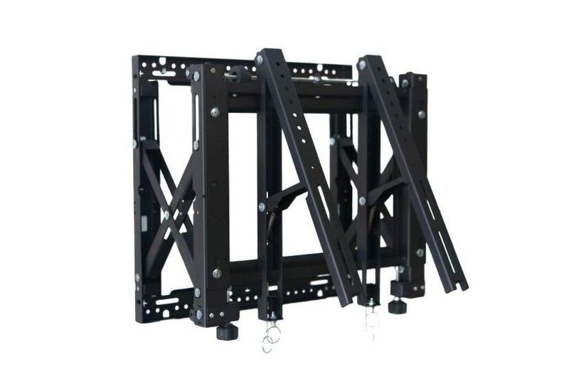 Ref: VWPOP95-P Edbak El VWPOP95-P es un soporte emergente profesional diseñado para construir videowalls en formato vertical. Para pantallas de 70 a 95” en instalación vertical. El diseño abierto permite un acceso total al cableado, y las bridas incluidas sirven para ocultar los cables de forma fácil y estética. El ajuste independiente de 8 puntos permite una alineación precisa de las pantallas sin necesidad de utilizar herramientas. Sistema especial retráctil para facilitar el acceso para el servicio. El VWPOP95-P está equipado con un bloqueo para evitar la apertura incontrolada de la estructura. - El ajuste independiente de 8 posiciones permite una alineación precisa de las pantallas sin necesidad de utilizar herramientas - El mecanismo retráctil proporciona un cómodo acceso de servicio a las pantallas instaladas en huecos y lugares de difícil acceso para el servicio - La inclinación de 20° de la pantalla con el soporte abierto aumenta el acceso a la parte posterior de la pantalla desde la parte inferior - El mecanismo retráctil puede asegurarse con un tornillo de bloqueo para evitar que la mampara se extienda accidentalmente - El diseño abierto del producto proporciona un acceso total al cableado, y las bridas suministradas facilitan la gestión de los cables - Los orificios de montaje y los espaciadores cuidadosamente seleccionados eliminan la necesidad de realizar cálculos en la obra - El ajuste del muelle del mecanismo retráctil permite un ajuste adecuado para pantallas de diferentes masas para obtener una extensión segura y controlada