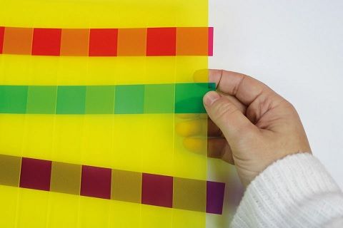 Tapetes de tejido translúcidos en colores vibrantes. Perfectos para practicar la técnica de tejido en mesas de luz y crear secuencias de colores. Excelentes para la coordinación de ambas manos.