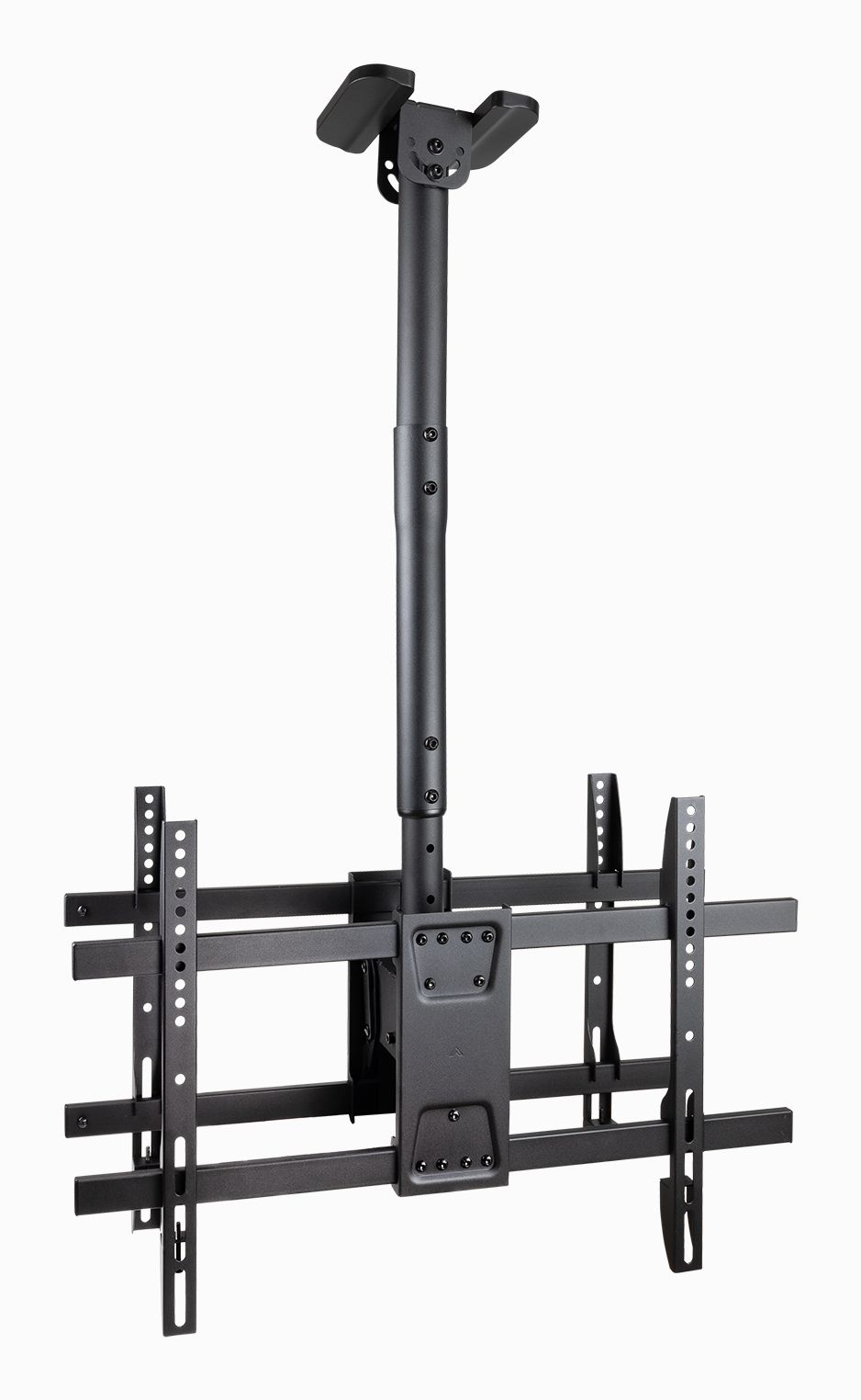 Más informaciónCapacidad máxima de peso:100 kg|Tamaño mínimo de pantalla:109,2 cm (43")|Número de pantallas soportadas:2|Tamaño máximo de pantalla:2,18 m (86")|Compatibilidad con interfaz de montaje (min):200 x 200 mm|Compatibilidad con interfaz de montaje (max):600 x 400 mm|Interfaz de panel de montaje:200 x 200,300 x 300,400 x 200,400 x 400,600 x 400|Tipo de montaje:Techo|Ajustes de altura:Si|Tipo de ajuste de altura:Manual|Rango de ajustes de altura:485 - 925 mm|Ajuste de la inclinación:Si|Ángulo de inclinación:-20 - 5°|Giratorio:Si|Ángulo de giro (alcance):-180 - 180°|Ángulo de pivote:-60 - 60°|Gestión de cables:Si|Indicado para pantalla curvada:Si|Color del producto:Negro|Material de la carcasa:Acero|Cantidad por paquete:1 pieza(s)|Manual de usuario:Si|Kit de montaje:Si|Contenido del paquete:1 x Soporte1 x Kit montaje (incluye herramientas)1 x Manual de instalación|Ancho:689 mm|Altura:1140 mm|Peso:8,05 kg|Ancho del paquete:437 mm|Profundidad del paquete:168 mm|Altura del paquete:255 mm|Peso del paquete:8,45 kg|Tipo de embalaje:Caja