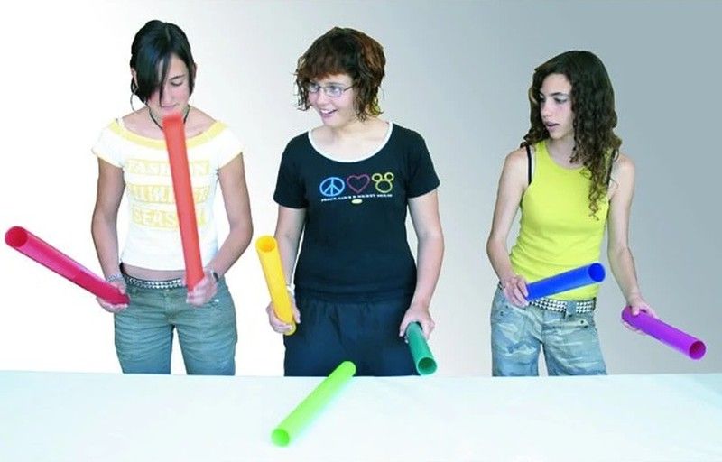 Cada tubo emite una nota musical al ser golpeado contra el suelo o entre ellos. Fabricados en un material blando y ligero. Perfectamente afinados.